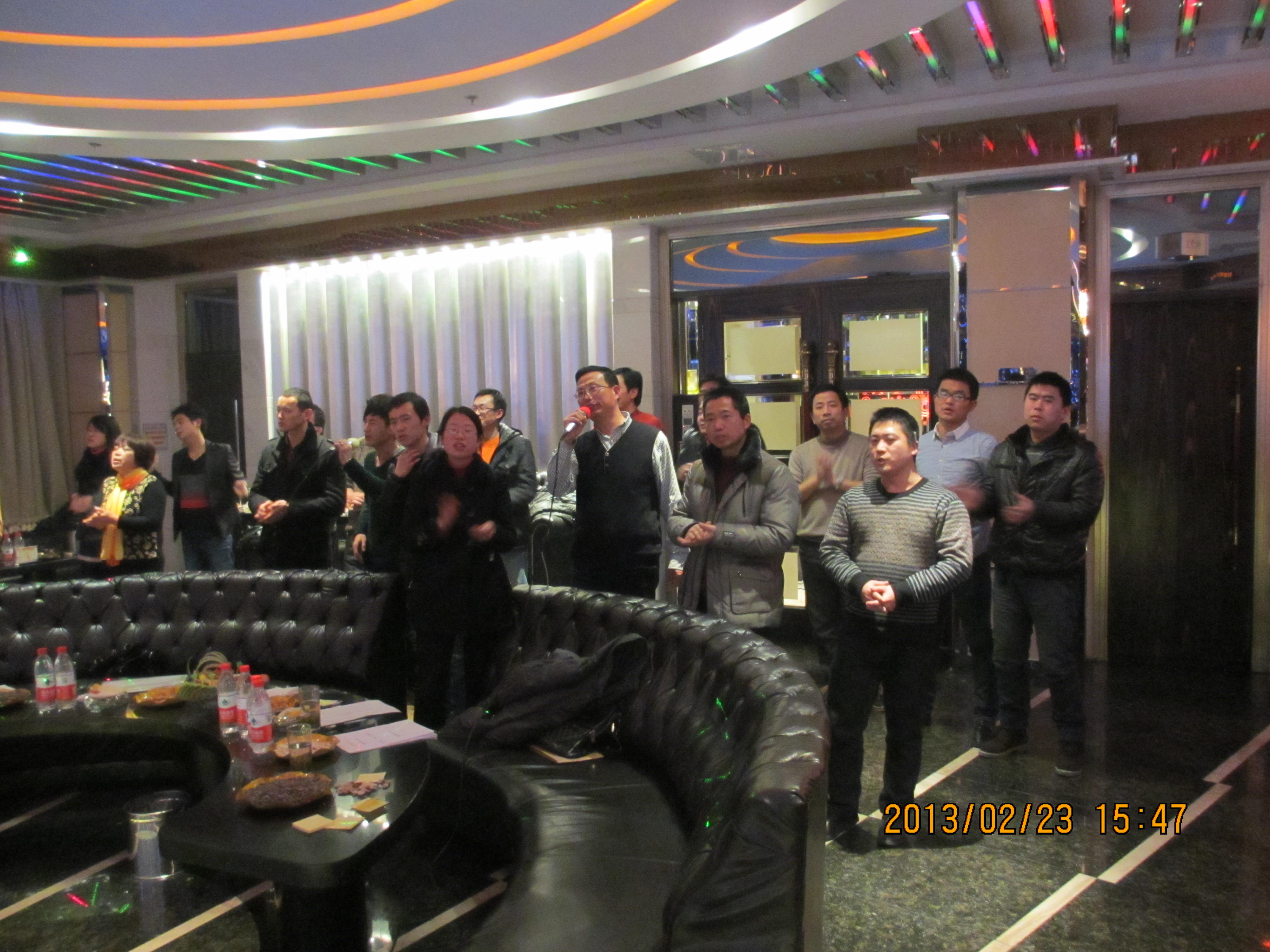 龍飛蛇舞,燕語(yǔ)鶯歌。正月十四,正值前友2013冬期培訓(xùn)期間,公司在創(chuàng)想KTV舉辦了首屆“前友好聲音”卡拉OK比賽,比賽由青年員工鮑哲和胡彩霞激情主持,總經(jīng)理鄒明、技術(shù)負(fù)責(zé)人王大遠(yuǎn)、綜合辦主任陳衛(wèi)擔(dān)任本次比賽評(píng)委。 本次比賽內(nèi)容精彩豐富,員工積極響應(yīng)踴躍報(bào)名,比賽高潮一浪高過(guò)一浪,階段賽制更是比賽的亮點(diǎn),選手各懷絕技:流行歌曲、民歌、錫劇曲種多樣。復(fù)賽階段結(jié)束后,場(chǎng)上響起的《江南style》再次帶動(dòng)起了大家的熱情,風(fēng)靡全球的騎馬舞在員工們身上表現(xiàn)的淋漓盡致。實(shí)力選手更是在決賽相遇,場(chǎng)上瞬間達(dá)到沸點(diǎn),選手們深情的演唱、勁爆的說(shuō)唱讓場(chǎng)下觀眾掌聲不斷。最終,憑借完美的唱功和優(yōu)秀的舞臺(tái)表現(xiàn)力,員工董洪飛獲得了本次前友好聲音比賽的一等獎(jiǎng),鮑哲、陳江濤獲得二等獎(jiǎng),朱奇華、廉建華、何晴君獲得了比賽的三等獎(jiǎng)。 緊張激烈的比賽后,總經(jīng)理鄒明對(duì)本次比賽進(jìn)行了精彩的點(diǎn)評(píng)也為大家獻(xiàn)上了一首《相逢是首歌》。前友的明天會(huì)更美好,在所有人員的《明天更美好》歌聲中,首屆“前友好聲音”落下帷幕!