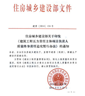 為進一步落實建筑施工項目經(jīng)理質(zhì)量安全責任,保證工程質(zhì)量安全,8月25日,國家住建部頒發(fā)了建質(zhì)[2014]123號文件“住房城鄉(xiāng)建設(shè)部關(guān)于印發(fā)《建筑施工項目經(jīng)理質(zhì)量安全責任十項規(guī)定(試行)》的通知”。 十項規(guī)定中第四項規(guī)定:項目經(jīng)理必須組織對進入現(xiàn)場的建筑材料、構(gòu)配件、設(shè)備、預(yù)拌混凝土等進行檢驗,未經(jīng)檢驗或檢驗不合格,不得使用;必須組織對涉及結(jié)構(gòu)安全的試塊、試件以及有關(guān)材料進行取樣檢測,送檢試樣不得弄虛作假,不得篡改或者偽造檢測報告,不得明示或暗示檢測機構(gòu)出具虛假檢測報告。 附件一“建筑施工項目經(jīng)理質(zhì)量安全違法違規(guī)行為行政處罰規(guī)定”中對應(yīng)違反第四項規(guī)定的行政處罰:(1)未對進入現(xiàn)場的建筑材料、建筑構(gòu)配件、設(shè)備、預(yù)拌混凝土等進行檢驗的,對施工單位按照《建設(shè)工程質(zhì)量管理條例》第65條規(guī)定實施行政處罰,對項目經(jīng)理按照《建設(shè)工程質(zhì)量管理條例》第73條規(guī)定實施行政處罰;(2)使用不合格的建筑材料、建筑構(gòu)配件、設(shè)備的,對施工單位按照《建設(shè)工程質(zhì)量管理條例》第64條規(guī)定實施行政處罰,對項目經(jīng)理按照《建設(shè)工程質(zhì)量管理條例》第73條規(guī)定實施行政處罰;(3)未對涉及結(jié)構(gòu)安全的試塊、試件以及有關(guān)材料取樣檢測的,對施工單位按照《建設(shè)工程質(zhì)量管理條例》第65條規(guī)定實施行政處罰,對項目經(jīng)理按照《建設(shè)工程質(zhì)量管理條例》第73條規(guī)定實施行政處罰。 附件二“建筑施工項目經(jīng)理質(zhì)量安全違法違規(guī)行為記分管理規(guī)定”中列出,項目經(jīng)理有下列行為之一的,一次記6分:未按規(guī)定組織對涉及結(jié)構(gòu)安全的試塊、試件以及有關(guān)材料進行見證取樣的;送檢試樣弄虛作假的;篡改或者偽造檢測報告的;明示或暗示檢測機構(gòu)出具虛假檢測報告的。 住建部同日還頒發(fā)了“住房城鄉(xiāng)建設(shè)部關(guān)于印發(fā)《建筑工程五方責任主體項目負責人質(zhì)量終身責任追究暫行辦法》的通知”。建筑工程五方責任主體是指承擔建筑工程項目建設(shè)的建設(shè)單位項目負責人、勘察單位項目負責人、設(shè)計單位項目負責人、施工單位項目經(jīng)理、監(jiān)理單位總監(jiān)理工程師。