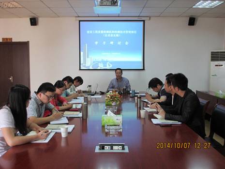 | 公司學習研討《建設工程質(zhì)量檢測機構(gòu)檢測技術(shù)管理規(guī)范》 | ||