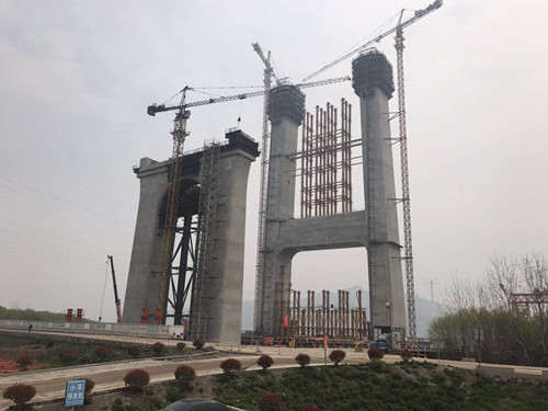 五峰山長(zhǎng)江特大橋位于江蘇泰州長(zhǎng)江大橋和潤(rùn)揚(yáng)長(zhǎng)江大橋之間,是繼1968年建成的南京長(zhǎng)江大橋和正在建設(shè)的滬通長(zhǎng)江大橋之后的長(zhǎng)江江蘇段第三座公鐵兩用大橋,是連接連淮揚(yáng)鎮(zhèn)鐵路和京滬高速公路南延的關(guān)鍵節(jié)點(diǎn)工程。其全長(zhǎng)6400多米,其中主跨為1092米,采用單跨懸吊鋼桁梁懸索結(jié)構(gòu),上層為8車道高速公路,設(shè)計(jì)速度每小時(shí)100公里;下層為4線高速鐵路通道,設(shè)計(jì)速度每小時(shí)250公里。 五峰山公鐵兩用長(zhǎng)江大橋建成后,將是中國第一座鐵路懸索橋,也是世界荷載和設(shè)計(jì)時(shí)速第一的鐵路懸索橋。該工程中,研發(fā)和應(yīng)用了大量的新技術(shù)、新工藝。 3月24日,無錫市建筑施工學(xué)術(shù)委員赴丹徒五峰山長(zhǎng)江大橋項(xiàng)目現(xiàn)場(chǎng),在參與施工的江陰一建技術(shù)人員的陪同下,登上北岸主橋墩滑模平臺(tái)現(xiàn)場(chǎng)參觀。