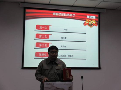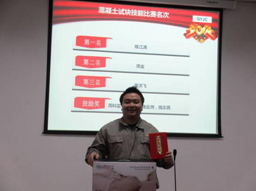 歡歡喜喜送玉兔,熱熱鬧鬧迎騰龍! 新年伊始,2月4日下午我公司順利舉行了檢測(cè)操作技能比賽(砼試塊、鋼筋),比賽選手為我公司檢測(cè)員,比賽由公司技術(shù)負(fù)責(zé)人王大遠(yuǎn)、檢測(cè)室主任孟巍巍以及主任助理周惠擔(dān)任評(píng)委。選手們個(gè)個(gè)斗志昂揚(yáng)、充滿激情,技能比武,熱浪不斷掀起,每位選手都不甘示弱。砼試塊檢測(cè)比賽過程中,選手們嚴(yán)格按照規(guī)范進(jìn)行操作——開機(jī)預(yù)熱、測(cè)量試塊尺寸、輸入任務(wù)單編號(hào)、選擇量程和加載速度以及進(jìn)行最后的數(shù)據(jù)處理,表現(xiàn)的有條不紊。鋼筋檢測(cè)過程中,選手們?cè)诜Q重和量斷后標(biāo)距這兩個(gè)環(huán)節(jié)中尤為認(rèn)真,生怕讀錯(cuò)數(shù)據(jù)影響最終的檢測(cè)結(jié)果。比賽一結(jié)束,選手們互相交流經(jīng)驗(yàn),操作的注意事項(xiàng)等。 經(jīng)過激烈的角逐,砼試塊檢測(cè)的前三名分別是老員工陳江濤、周全以及新進(jìn)員工董洪飛。周全、周科雷、王克如分獲鋼筋檢測(cè)的一二三名。 賽后大家總結(jié)了自己操作過程中的不足互相取長補(bǔ)短,鞏固了常規(guī)材料檢測(cè)項(xiàng)目的知識(shí),為2012年的檢測(cè)工作開了個(gè)好頭。龍年,吉祥年,相信前友檢測(cè)公司會(huì)有豐瑞成績(jī)!