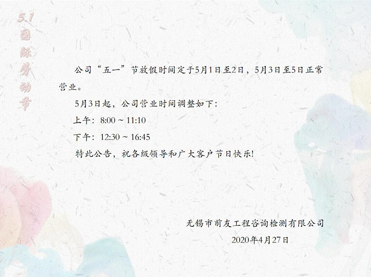 | 關于“五一”勞動節(jié)放假及節(jié)后營業(yè)時間調(diào)整的公告 | ||