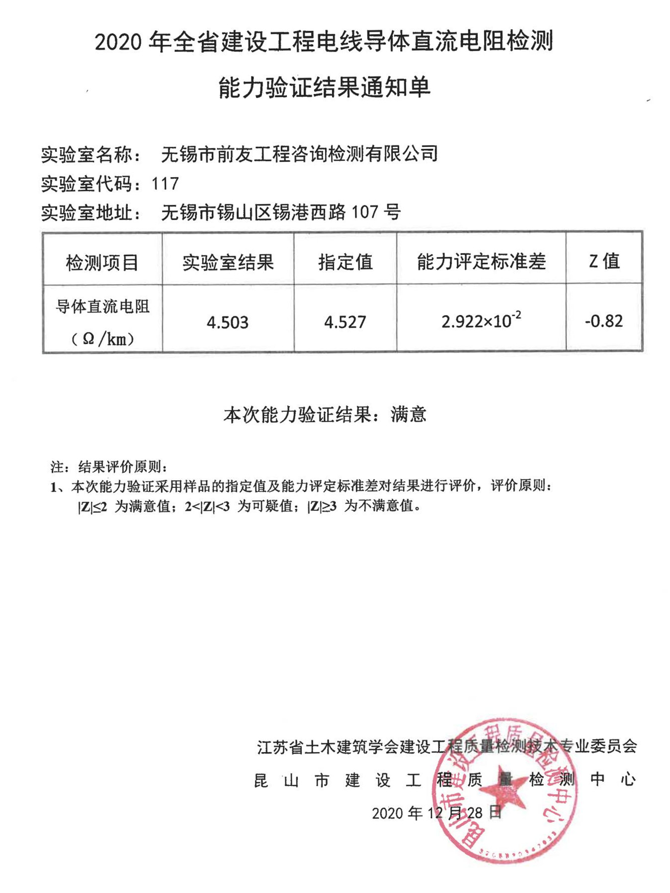 根據(jù)《省住房城鄉(xiāng)建設(shè)廳關(guān)于做好2020年全省建設(shè)工程質(zhì)量檢測(cè)能力驗(yàn)證工作的通知》文件要求,江蘇省土木建筑學(xué)會(huì)建設(shè)工程質(zhì)量檢測(cè)技術(shù)專業(yè)委員會(huì)委托昆山市建設(shè)工程質(zhì)量檢測(cè)中心組織開展了2020年全省電線導(dǎo)體直流電阻檢測(cè)能力驗(yàn)證。2020年12月31日,發(fā)布了能力驗(yàn)證結(jié)果。 近日,公司收到2020年全省電線導(dǎo)體直流電阻檢測(cè)能力驗(yàn)證結(jié)果通知單與能力驗(yàn)證結(jié)果滿意證書。