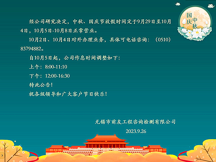 | 關(guān)于中秋、國慶放假及節(jié)后營業(yè)時間調(diào)整的公告 | ||