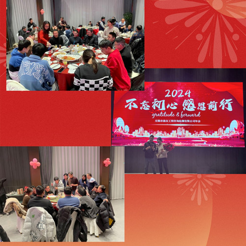 玉兔辭舊歲,龍騰賀新春。2月6日,伴隨著春天的腳步,在歡快的樂(lè)曲聲中,無(wú)錫市前友工程咨詢(xún)檢測(cè)有限公司2024新春茶話(huà)會(huì)拉開(kāi)序幕,前友大家庭歡聚一堂,敘情誼,話(huà)未來(lái),迎龍年。 茶話(huà)會(huì)上,公司總經(jīng)理為大家送上了新春祝福,并結(jié)合當(dāng)前市場(chǎng)形勢(shì)總結(jié)2023,展望2024,感謝每一位員工為公司發(fā)展付出的辛勤和努力。隨后,大家庭的其它成員紛紛積極踴躍發(fā)言,分享一年來(lái)的所感、所想、所悟,感恩一路走來(lái)大家一起奮斗、一同成長(zhǎng),互致同事身體健康、闔家幸福、龍行龘龘、前程?hào)T朤,共祝公司龍?bào)J闊躍啟新歲,凝勢(shì)踞彰續(xù)輝煌。會(huì)議期間,傳來(lái)喜訊,公司領(lǐng)回了國(guó)家高新技術(shù)企業(yè)證書(shū)。 接下來(lái),是前友一家人的年夜飯時(shí)光。紅包與彩票大獎(jiǎng)將花落誰(shuí)家?誰(shuí)又會(huì)是今年的幸運(yùn)錦鯉?隨著公司領(lǐng)導(dǎo)新年紅包的發(fā)出,一輪又一輪的搶紅包將年夜飯的歡樂(lè)氣氛推向高潮。搶紅包、刮彩票,在這寒冷的夜晚,公司為每一位家人送上了一頓熱氣騰騰又激動(dòng)人心的年夜飯。 甜甜的笑容,深深的祝福,讓我們的笑容充滿(mǎn)著青春的驕傲,讓我們期待明天會(huì)更好!在員工們慷慨激昂的歌聲中,此次活動(dòng)圓滿(mǎn)結(jié)束。